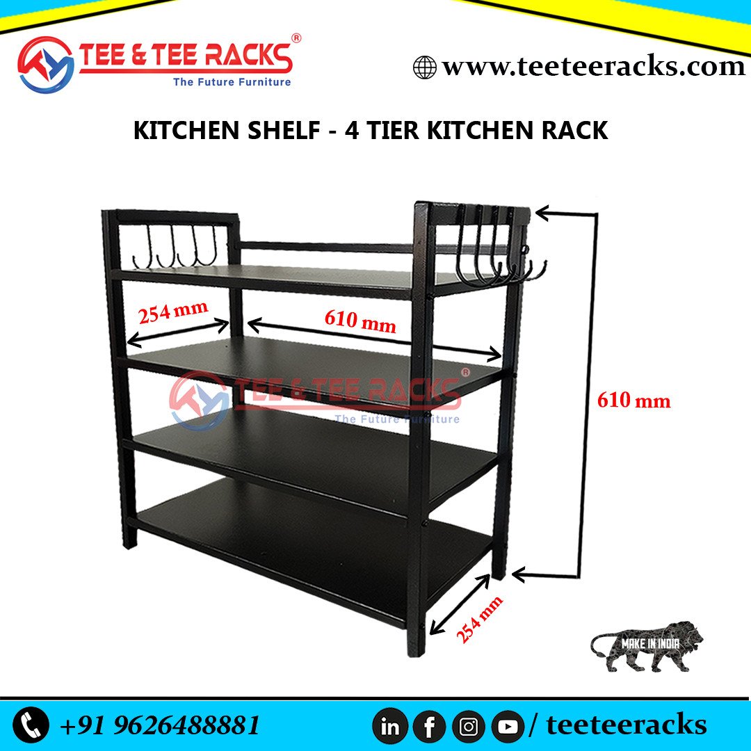 4 TIER Kitchen shelf Masala Jars Organizer Spice Rack Dish Rack Utensil Rack Pot Rack Pan Rack