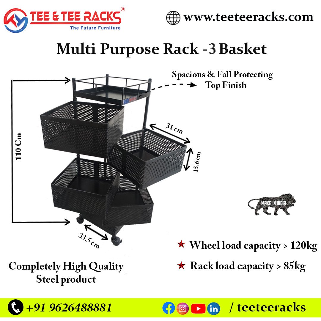 TEE & TEE RACK® Multi purpose Rotating rack Trolley is storage rack shelves which comes with Wheels, Portable Storage Rack for kitchen, Bathroom & Living Room, Fruits & Vegetable Container Basket Organizer Holder Stand