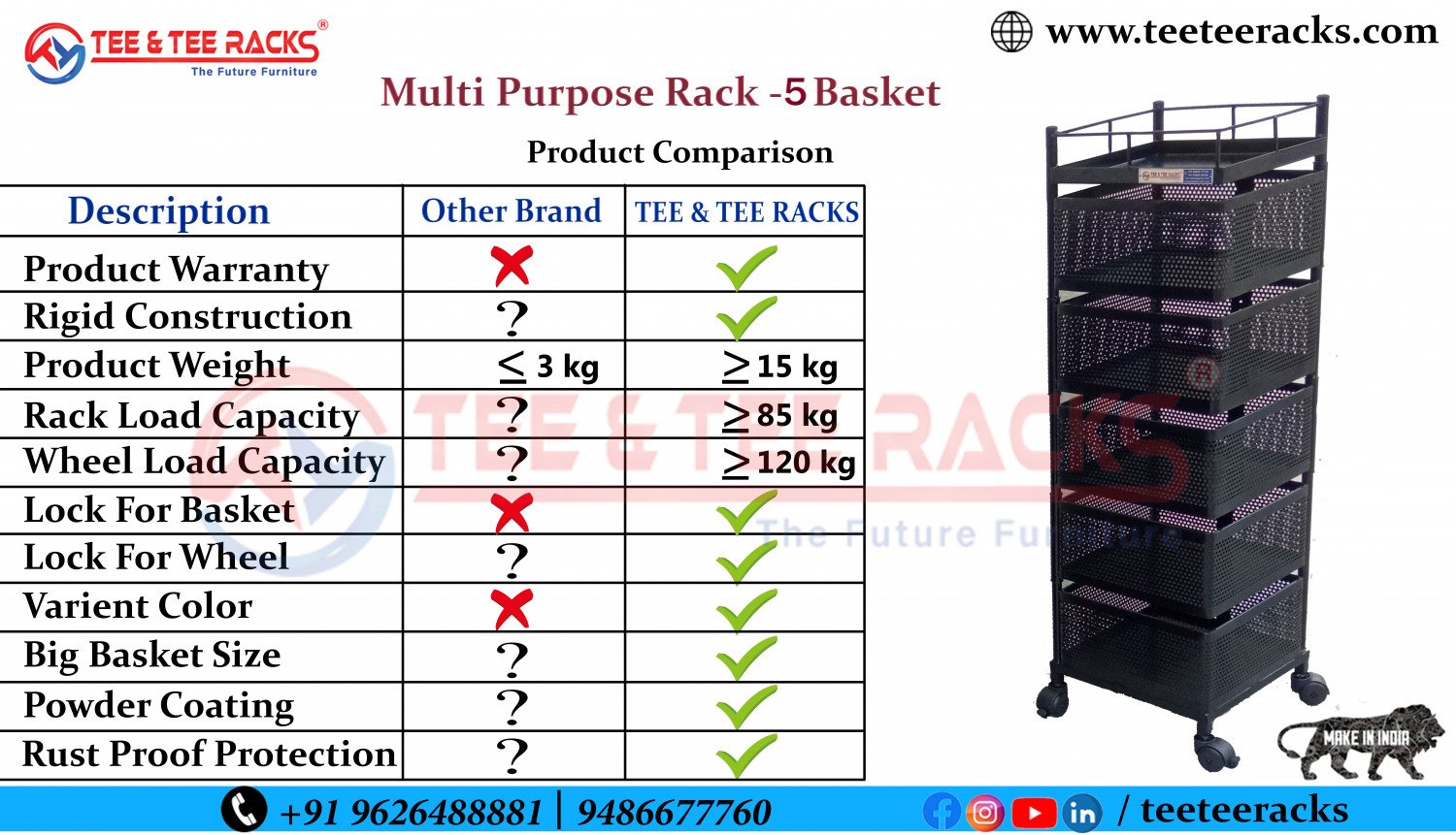 TEE & TEE Multipurpose trolley rack is a versatile rack can be used as a house hold storage rack as well as commercial storage rack suitable for office, restaurants & health care units.